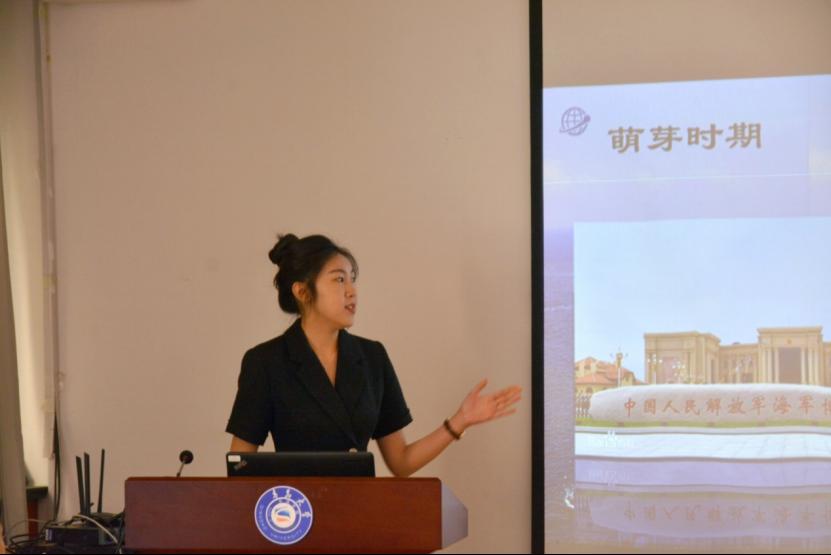 学生第二党支部张锦秀以“踏浪前行,逐梦深蓝”为主题,讲述了自己与支部一起走进海军博物馆,切身体会海军历史帷幕里的峥嵘历程的故事。从而阐述作为一名beat365 官方网站的学子,不应该只是两国语言的学习者,更应该作为中国故事的讲述人,文化交流的摆渡人。