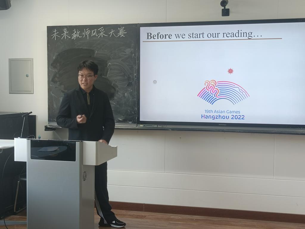 按照比赛要求,选手围绕赛题展开10分钟的真实课堂教学+3分钟的与英语相关的才艺展示。在教学过程中,参赛选手丰神异彩,教态自然。教学设计丰富多元,教学风格各具特色。设计用提出问题的方式引导学生的思考,体现以学生为中心的教学理念。才艺展示环节选手们大展身手,从声情并茂的朗诵,到悦耳动听的歌曲;从生动有趣的简笔画,到活泼明快的舞蹈,展示了英语教育系学生的综合素质能力。