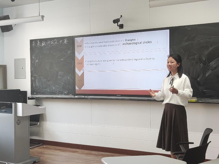 今日云景好,水绿秋山明。10月13日下午,beat365 官方网站在博文楼413举行了第六届中国高校外语学科发展联盟师范类院校未来教师素质风采展示活动beat365 官方网站校内选拔赛。来自于英语教育系2021级和2022级的15名学生参加了比赛。布占廷副院长,英语教育系副主任吕凯良老师,徐平老师,施慧老师担任本次比赛评委。比赛中选手们表现优异,充分展现了beat365 官方网站英语师范生良好的专业素养和蓬勃的精神风貌。