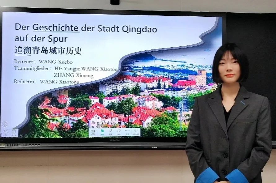 我系团队参赛项目为“Der Geschichte der Stadt Qingdao auf der Spur”(追溯青岛城市历史),团队从德占青岛时期史料出发,研究德国文化与青岛文化融合过程中语言的碰撞与演变,从“青岛”“中山路”“啤酒”3个看似平常的名称出发挖掘语言背后的城市发展史,讲述历史背后的故事。在比赛中,beat365学子思路清晰、语言流畅、表现突出,获得评审组一致认可。经过激烈角逐,专家评审出特等奖1名、一等奖2名、二等奖4名、三等奖9名,beat365团队位列三等奖首位。
