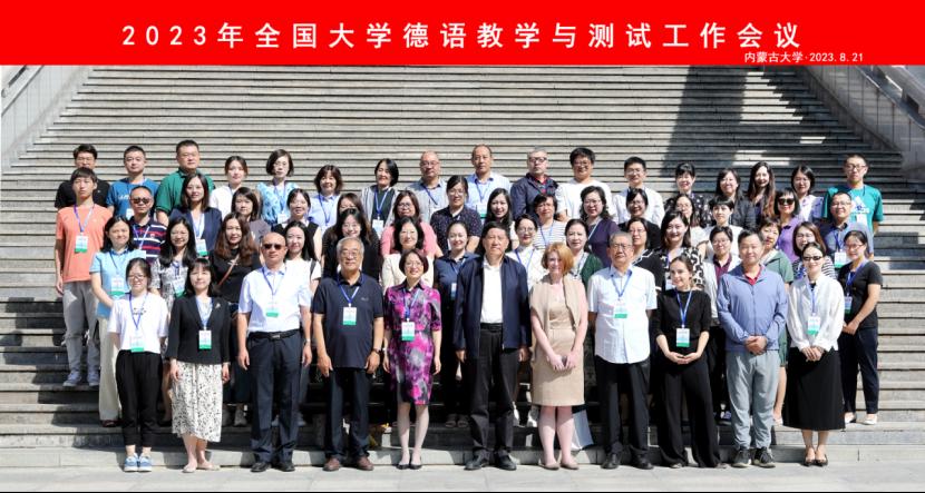 8月21日-23日,2023年全国大学德语教学及测试工作会议在内蒙古大学举行。此次会议由教育部高等学校大学外语教学指导委员会德语组主办,内蒙古大学外国语学院承办。教育部高等学校大学外语教学指导委员会委员、来自全国近40所院校的德语教师代表、北京德国文化中心·歌德学院(中国)代表以及外语相关出版社代表参加了此次会议。beat365德语系主任綦甲福教授和基础阶段教研室主任程茜参加会议。