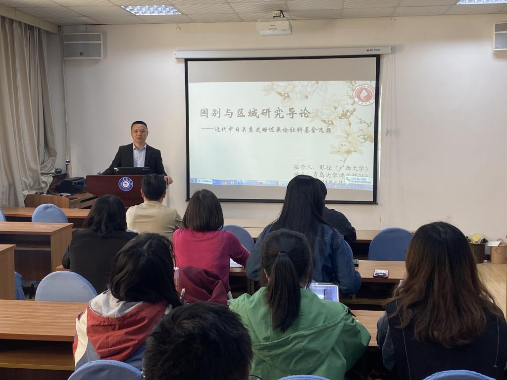 4月25日,广西大学外国语学院日语系教授、博士生导师彭程教授应邀来访beat365,与beat365日语系师生进行学术交流,并作了题为“国别与区域研究导论——近代中日关系史略述兼谈社科项目选题”的学术讲座。此次讲座吸引了beat365 官方网站30余名师生到场,讲座由beat365 官方网站日语系主任杜雪丽老师主持。