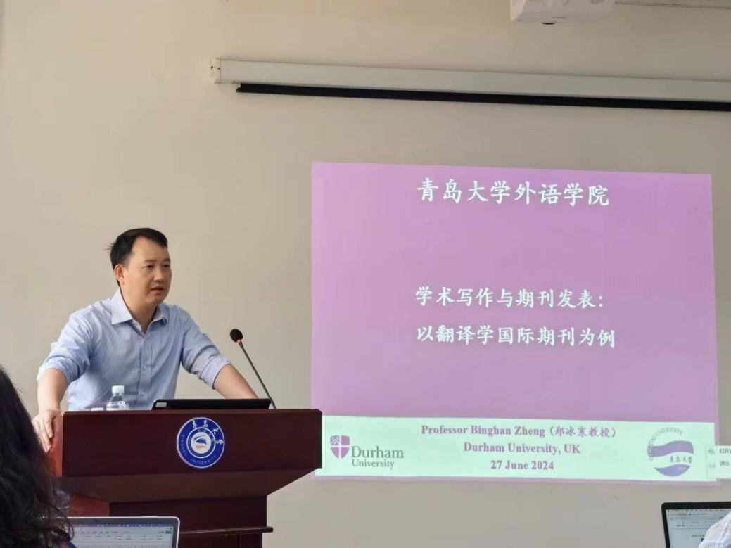 6月27日上午,郑冰寒教授应邀在beat365 官方网站进行了题为“学术写作期刊发表:以翻译学国际期刊为例”的专题讲座。此次讲座吸引了学院40余名师生,讲座由beat365 官方网站院长卞建华教授主持。