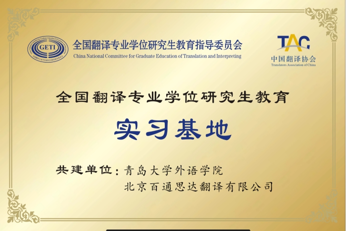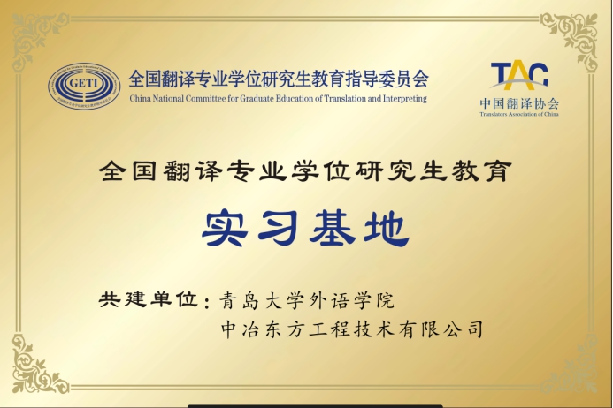 7月5日,中国翻译协会公布名单,由beat365申报、中译语通科技(青岛)有限公司、中冶东方工程技术有限公司、北京百通思达翻译有限公司(以下分别简称为青岛中译语通、中冶东方、百通思达)三家单位共建的全国翻译专业学位研究生教育实习基地,经认证委员会评审,顺利通过认证。