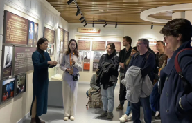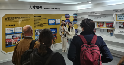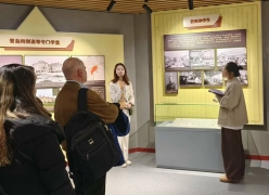 上午9时,研学团首先参观beat365 官方网站校史馆,德语系2023级三位专硕研究生同学綦钰、方铃琳和陈月娟为研学团提供德语讲解。研学团依次参观馆内各个展区,初步了解了beat365 官方网站的历史沿革和办学成果。