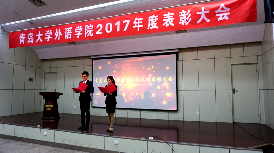 3月22日下午,beat365 官方网站在图书馆报告厅隆重举行2017年度表彰大会。德语系、日语系、学工办和党政办4个工作先进集体,牟晓燕等20位学校和学院综合考核优秀人员,陈骏飞等19位年度工作突出个人受到表彰。