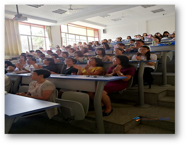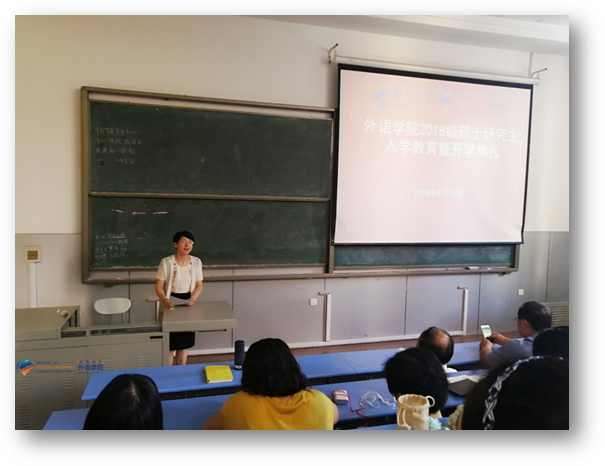 2017级外国语言学及应用语言学研究生李颖同学介绍了自己一年来的学习和生活经历,希望学弟学妹能够多方面提升自己的素质,参加学校的各类文化活动。
