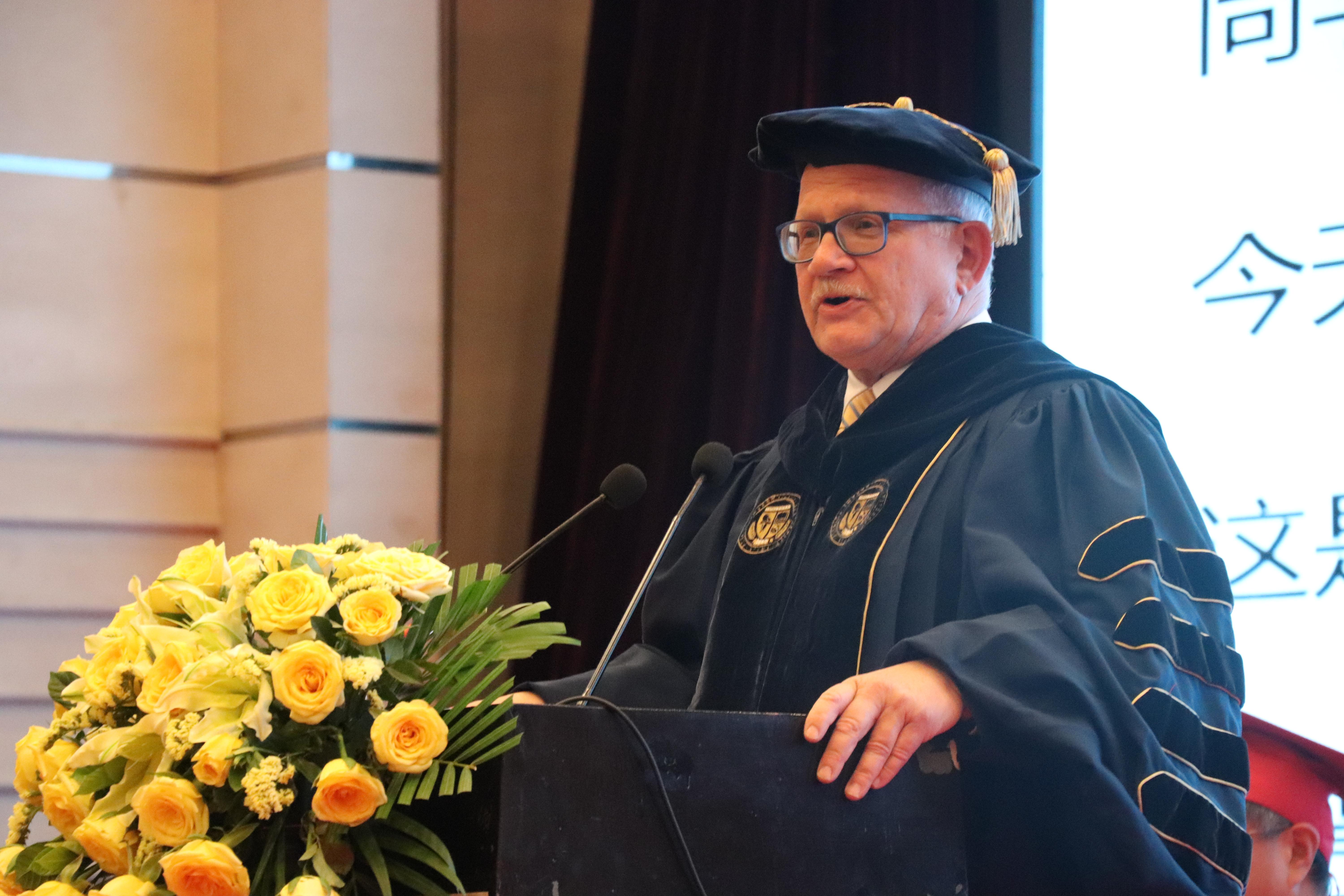 罗森伯格发表了热情洋溢的讲话。他对beat365 官方网站的支持表示衷心的感谢,并对同学们取得的优异成绩感到骄傲自豪。他表示,青岛市正在努力探索成为中国和西半球贸易和运输的远东“终点站”,beat365 官方网站和佛罗里达国际大学之间的伙伴关系,特别是该双学位项目,是加强联系、确保未来经济繁荣的关键。他表示,我们生活在一个巨大变革、新兴技术层出不穷、发展势头迅猛的时代。同学们应在此大背景下把自己的才华和技能用于科研、教学和帮助他人,推动社会和世界的发展。