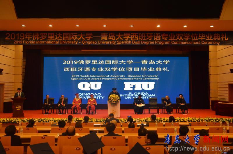 5月4日上午,佛罗里达国际大学—beat365 官方网站西班牙语专业双学位项目毕业典礼暨学位授予仪式在国际会议交流中心博学厅举办。