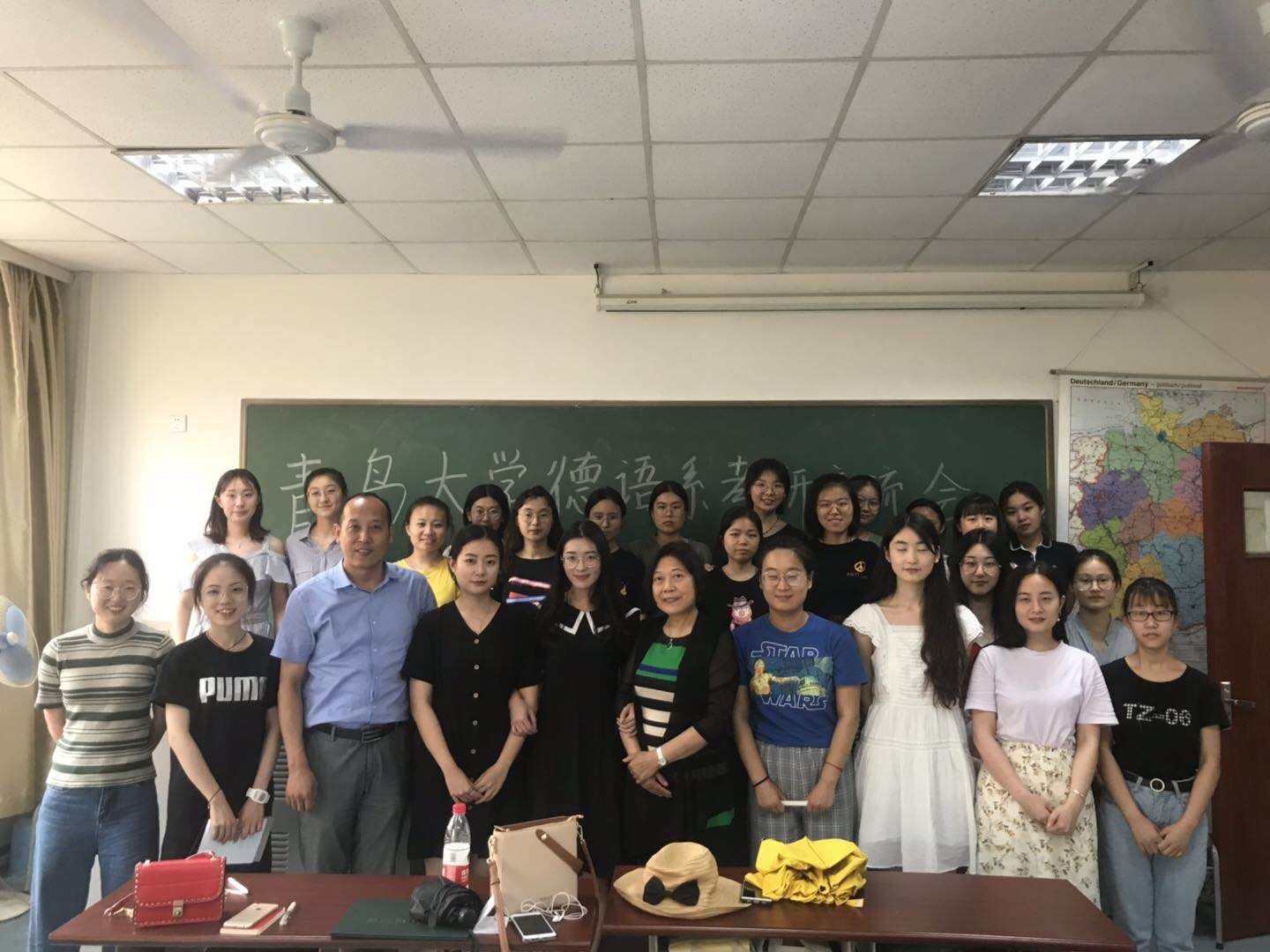 在夏季学期来临之际,beat365 官方网站德语系于6月27日下午在博文楼310教室召开考研经验交流会。德语系主任綦甲福和陈骏飞老师与2015级优秀毕业生一起,对2016、2017级近30名同学的考研及未来规划提出了意见和建议,并对相关问题进行了解答。