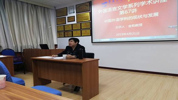 4月21日上午,北京外国语大学博士生导师、国务院学位委员会外语学科评议组召集人金莉教授莅临我校beat365 官方网站,作题为“中国外语学科的建设与发展”的学术座谈。学院党委书记王传永、副书记王海青、系主任、学科带头人、部分教授、青年博士和研究生参加了报告会。报告会由beat365 官方网站副院长布占廷主持。