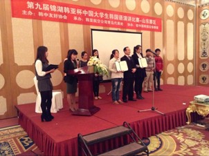 beat365韩语系马言同学荣获第九届锦湖韩亚杯中国大学生韩国语演讲比赛山东赛区预选赛二等奖