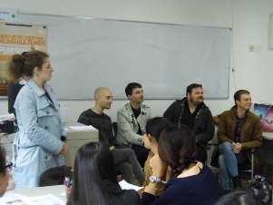 在青大,中德两方歌德语言中心的工作者和青大的学子们齐聚一趟。上午举行了欢迎仪式、文化涂鸦和趣味游戏等活动。下午大篷车德国友人Ruben和Peter等为同学们带来了有关德国音乐和饮食文化的报告,DAAD中方工作者刘梦婷也为同学们带来了有关留学德国的工作报告。随后德国爵士乐队Messer、外教Opa(爷爷)、Ruben和Peter分别和德语系同学们进行了轻松愉悦的交流会。