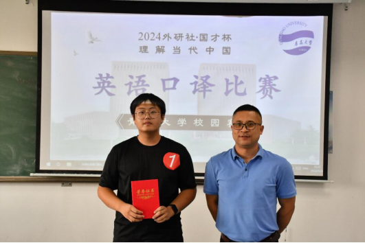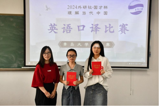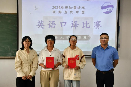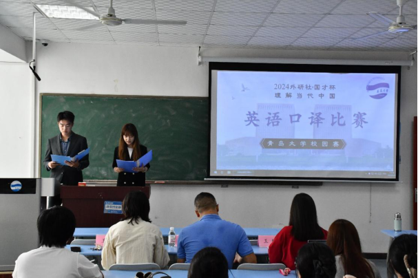 9月26日下午,beat365 官方网站2024“外研社·国才杯”英语口译比赛校园选拔赛于浮山校区博文楼404室成功举办,由韩嘉程和董姝彤主持。beat365 官方网站教师王芳、王建彬、王昕出席并担任大赛评委与颁奖嘉宾,