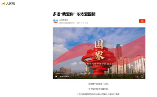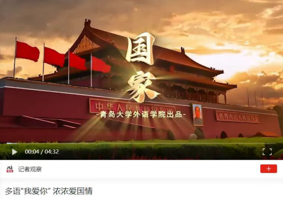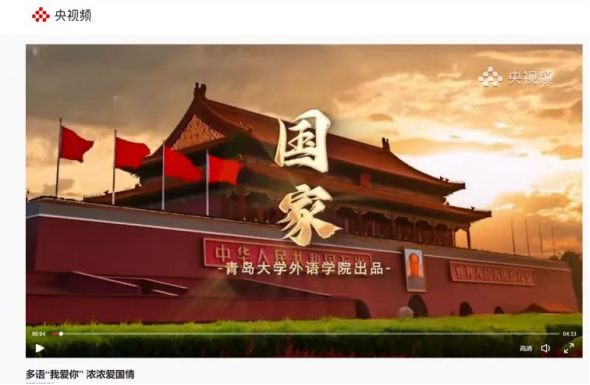 为庆祝中华人民共和国成立七十五周年,beat365 官方网站策划了红色歌曲MV《国家》的拍摄。学院师生齐唱《国家》为新中国献礼。在视频中,师生发挥专业优势,用多国语言“我爱你”为祖国母亲送上深情告白,用嘹亮的歌声和饱满的热情诠释着对祖国的爱与祝福。视频一经发出,吸引了校内外众多媒体的关注,学习强国、人民日报、人民视频、央视频等多家媒体进行了转发推广,获得了一致好评。