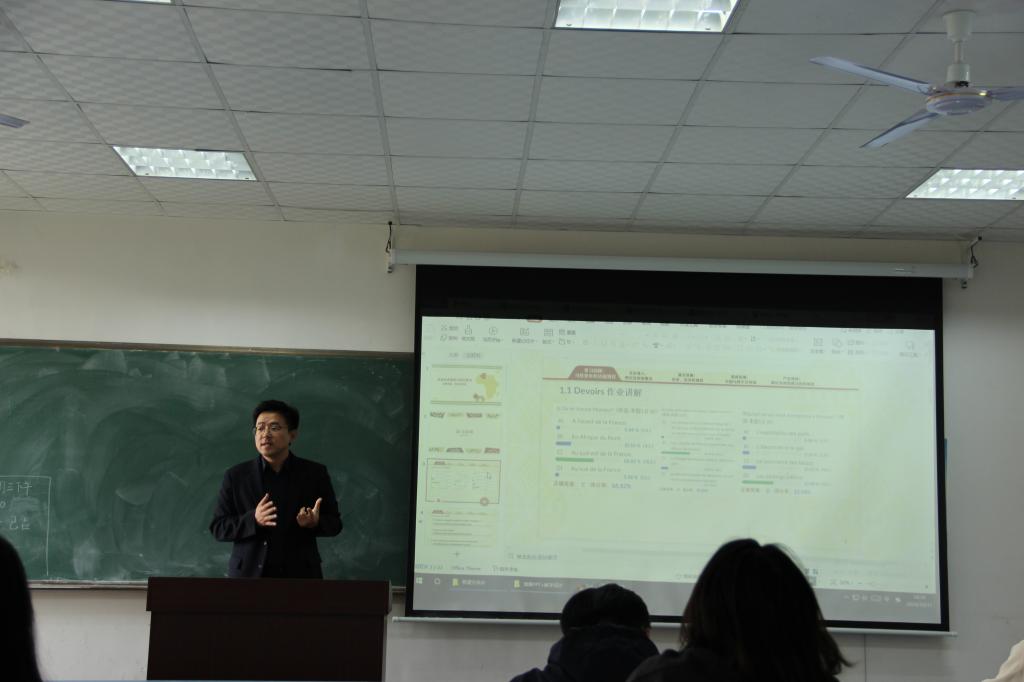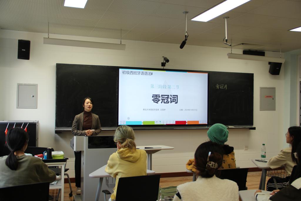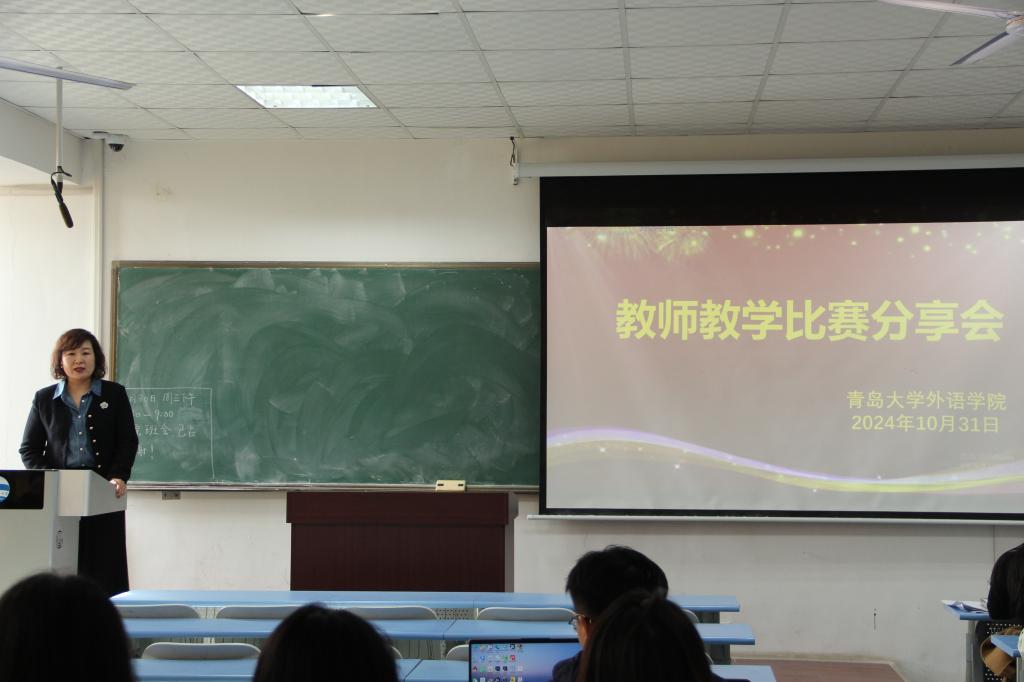 三位青年教师分享了他们在教学大奖赛和创新大赛中的经验:法语系副主任马一凡分享了比赛中的课程设计策略和学生互动技巧,强调细节和互动对教学效果的影响;法语系教师王墨结合比赛经验,讲解了参赛技巧及需要注意的事项;西班牙语教师王斐详细介绍了青年大奖赛的评分标准,并指出课程设计应紧扣这些标准。