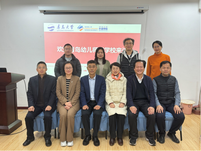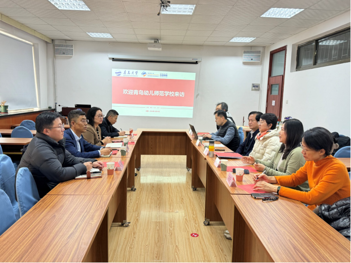 12月30日下午,青岛幼儿师范学校校长辛守涛、书记张萌萌、副校长施宝书、教务处主任戚歆一行到访beat365。beat365 官方网站院长卞建华、书记陈崇研、副院长布占廷、英语教育系主任秦硕谦、王进福及骨干教师吴芳出席本次交流活动。
