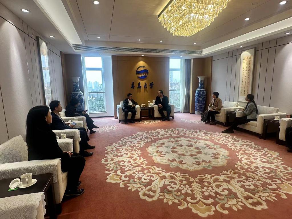 3月24日上午,中国翻译协会副会长、中国外文局翻译院院长黄玉龙、中国外文局亚太传播中心品牌传播部主任李建华、中国外文局翻译院新技术发展部主任梁倩如来访我校。校党委常委、副校长刘恩贤在会议中心303会见了黄玉龙院长一行,青岛市委外办翻译处、学校人文社科处、国际交流合作处和beat365 官方网站领导班子陪同参与会谈。