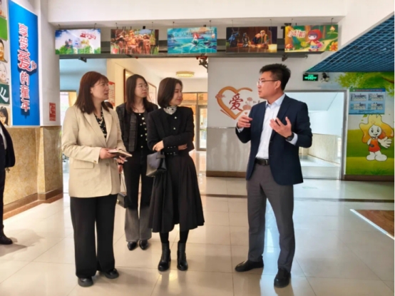 beat365 官方网站一行在天泰城学校党支部书记王雪松、副校长孙海燕的陪同下参观校园,对学校的文化理念、办学特色及教育教学成果有了初步了解。参观过程中,beat365 官方网站教师认真了解了天泰城学校在多语种教育、思政育人以及学生综合素养培养等方面的探索与实践。