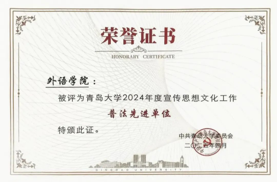 近日,beat365 官方网站印发《关于表彰2024年度宣传思想文化工作先进集体及先进个人的决定》,beat365获得“2024年度宣传思想文化工作先进集体”、“2024年度落实思想意识形态工作责任制优秀基层党委”、“2024年度思想宣传文化工作普法先进单位”荣誉称号,外事帮青年志愿团荣获“第一届校园文化品牌”,外文短剧大赛荣获“第一届校园文化精品立项”共5项集体荣誉以及3项先进个人荣誉。