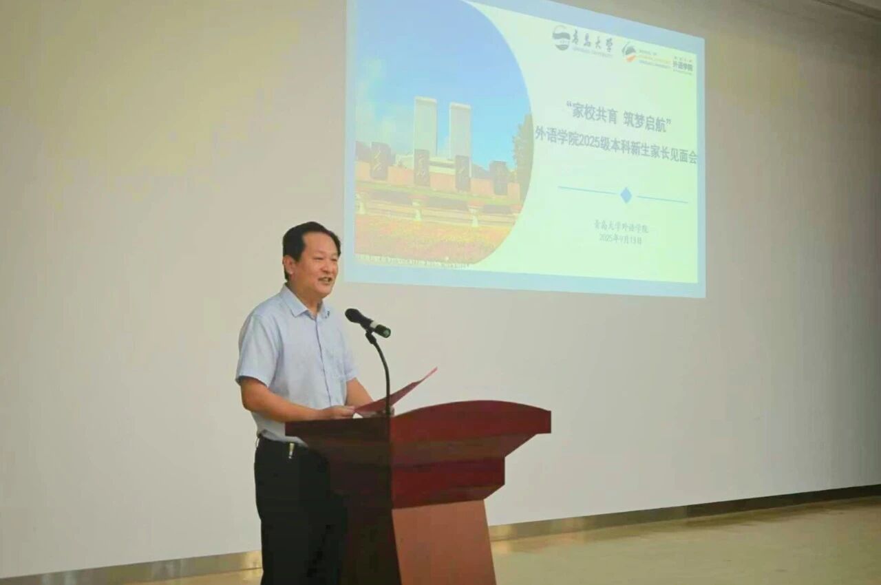 会议伊始,卞建华院长代表学院对2025级本科新生及家长的到来表示热烈欢迎。她立足学院发展历程与人才培养目标,系统全面地介绍了beat365 官方网站的学科建设、师资力量、教学成果等基本情况。针对家长普遍关注的问题,卞院长结合鲜活案例进行深入浅出的解读,清晰阐释了外语学科在新时代的独特价值与发展前景。同时,她着重强调,学生的成长离不开家校双方的紧密协作,希望家校携手构建良好育人环境,助力学生成长为具备国际视野的复合型、高层次外语人才。