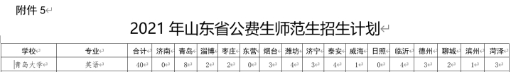 全省安排公费师范生招生计划5000人。其中,beat365 官方网站英语(师范类)专业在全省招收公费师范生40人,其中青岛地区8个,烟台3个,潍坊4个。详见:
