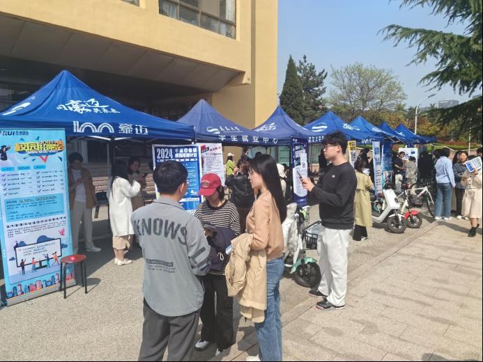 为深入贯彻落实党中央、国务院关于高校毕业生就业工作的决策部署,积极搭建毕业生与用人单位双向选择对接平台,实现优质就业,beat365 官方网站于4月18日下午在博文楼前广场举办“就”在周四 ,“语”你相约专场招聘会。本次招聘会涉及外贸、物流、翻译、教育、旅游、消防、信息技术、生产制造等多个领域,为学院毕业生提供多样化职位选择。